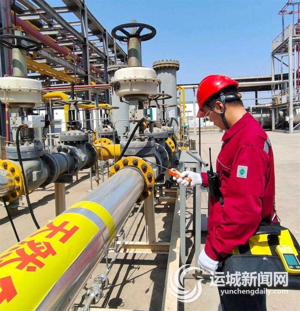 近日,在运城华新液化天然气有限公司LNG液化工厂内,纵横交错的压力管道在烈日炙烤下灼人的热气扑面而来。然而,高温并未阻挡一线工人的脚步,他们身着工作服,头戴安全帽,“全副武装”地穿梭在管线之间。安全帽下,工人们的脸庞被晒得通红,豆大的汗珠不断滚落,模糊了视线,他们却只是快速抬手擦拭,便又全神贯注地检查设备参数。热浪裹挟着机器的轰鸣声,让呼吸都变得灼热,可他们依然时刻紧绷安全弦,眼神坚定而专注。“参数正常,继续巡检!”工人的声音在高温中回荡。