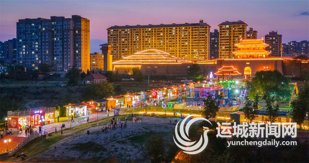 6月26日,中心城区河东池盐文化博览园灯火璀璨,游客在此游玩,畅享美好夏日。