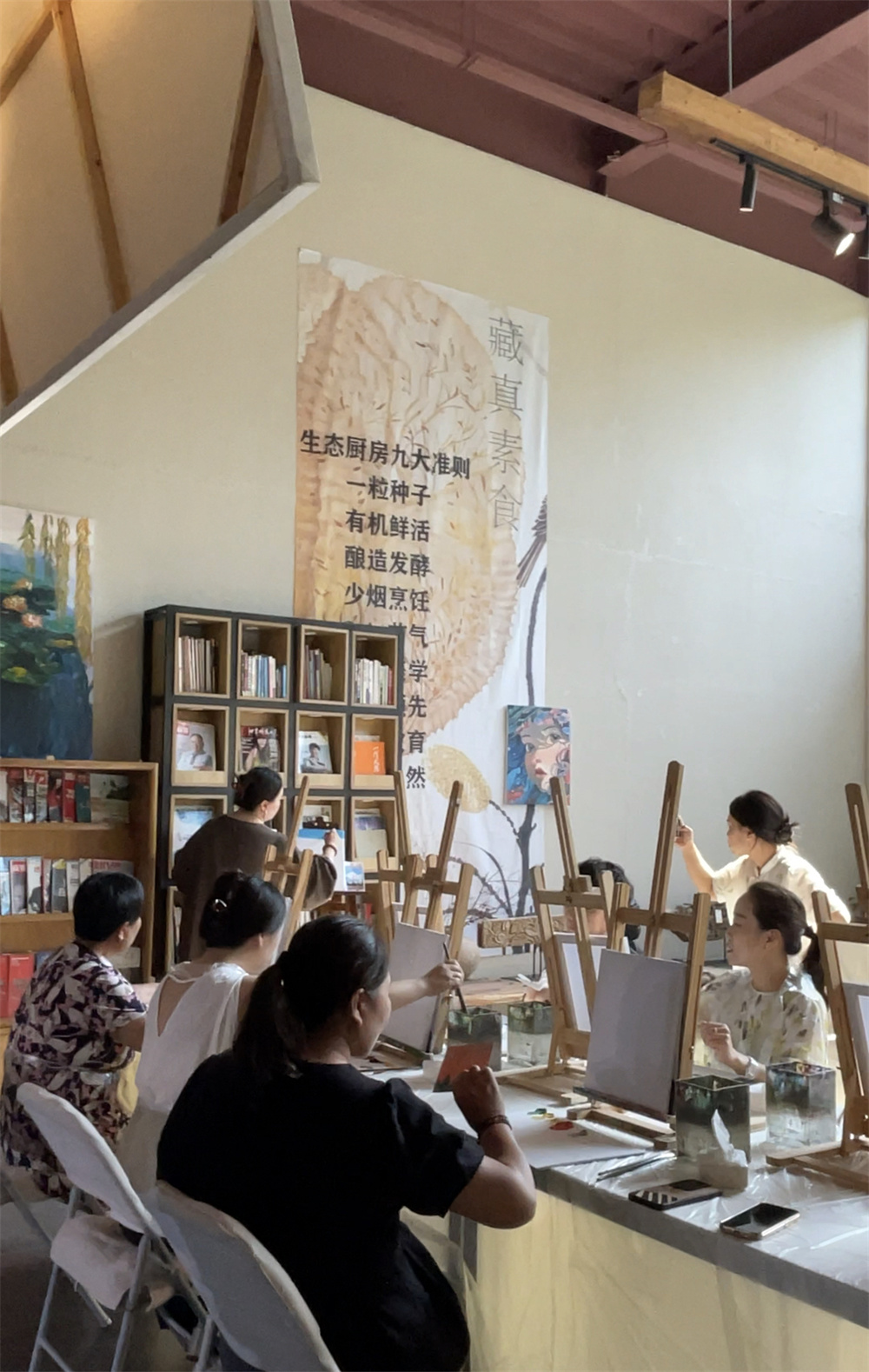 “画画是最容易获得即时反馈的事,你一笔一笔画下去,画面就会一点点成型,这种看得见的进步能极大提升人的自信心。”她曾带会员去看画展,起初大家只会说“好看”,而在画室学习一段时间后,他们能讨论色彩运用和构图技巧,“当他们能专业地评价画作时,我比自己画出好作品还开心。”