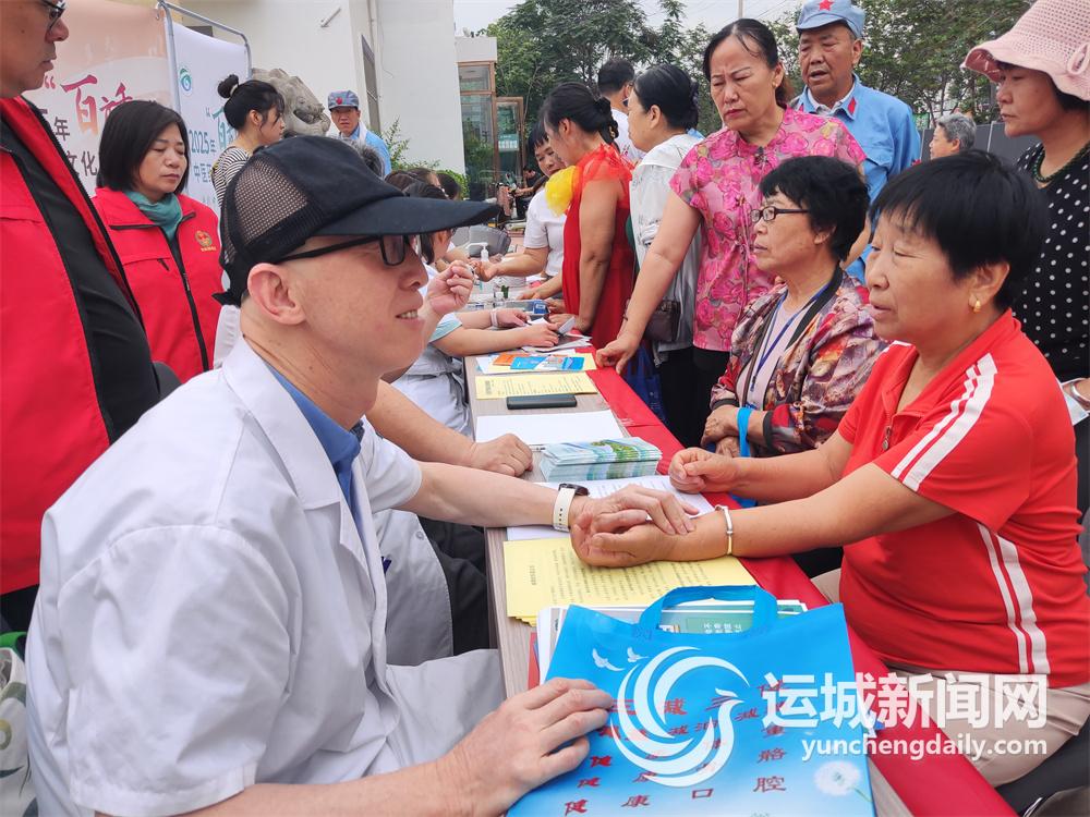 活动现场,临猗县中医院的医护人员为居民提供测血糖、量血压等免费基础检查和疾病筛查,一边检查,一边细致询问居民的健康状况、有无家族病史,以及生活习惯等,结合个体差异提供有针对性的解决办法;针对夏季高发的心血管疾病、胃肠功能紊乱等,开展“一对一”健康指导,并讲解疾病预防知识。