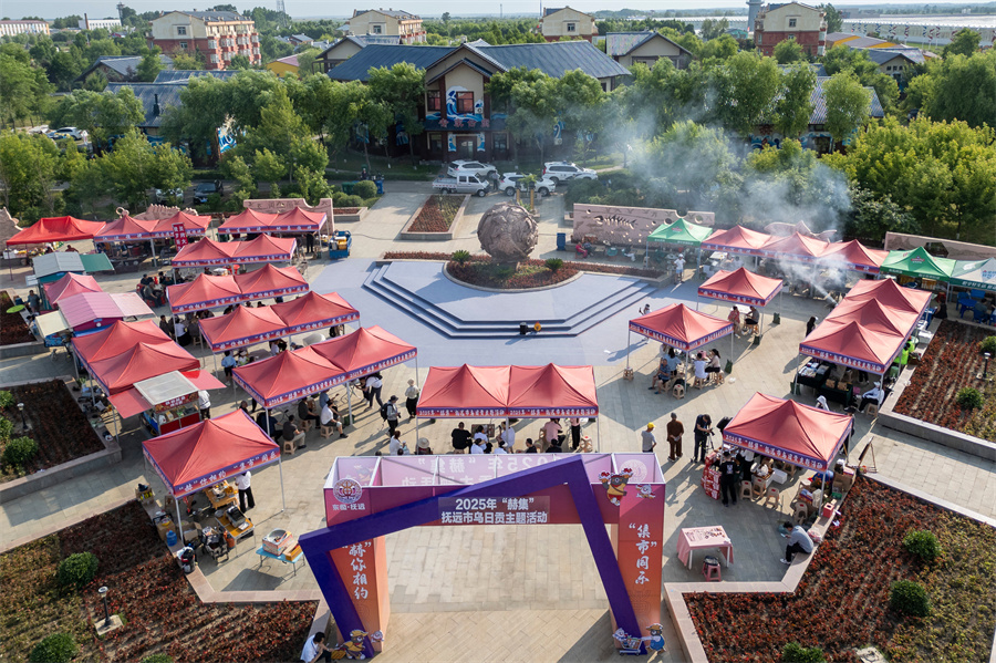 当日,黑龙江省抚远市乌苏镇抓吉赫哲族村集市乌日贡主题活动在莫日根广场举行,游客和当地群众在活动中品尝传统美食,感受赫哲族非遗技艺,体验乌日贡传统项目。