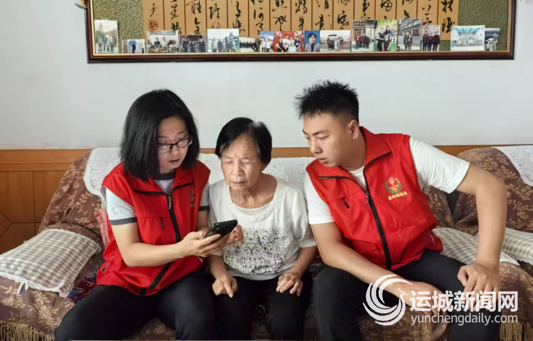 7月3日,在临猗县中城社区张奶奶家,社区网格员程培和董培森现场为老人完成了居民养老保险待遇领取资格认证。