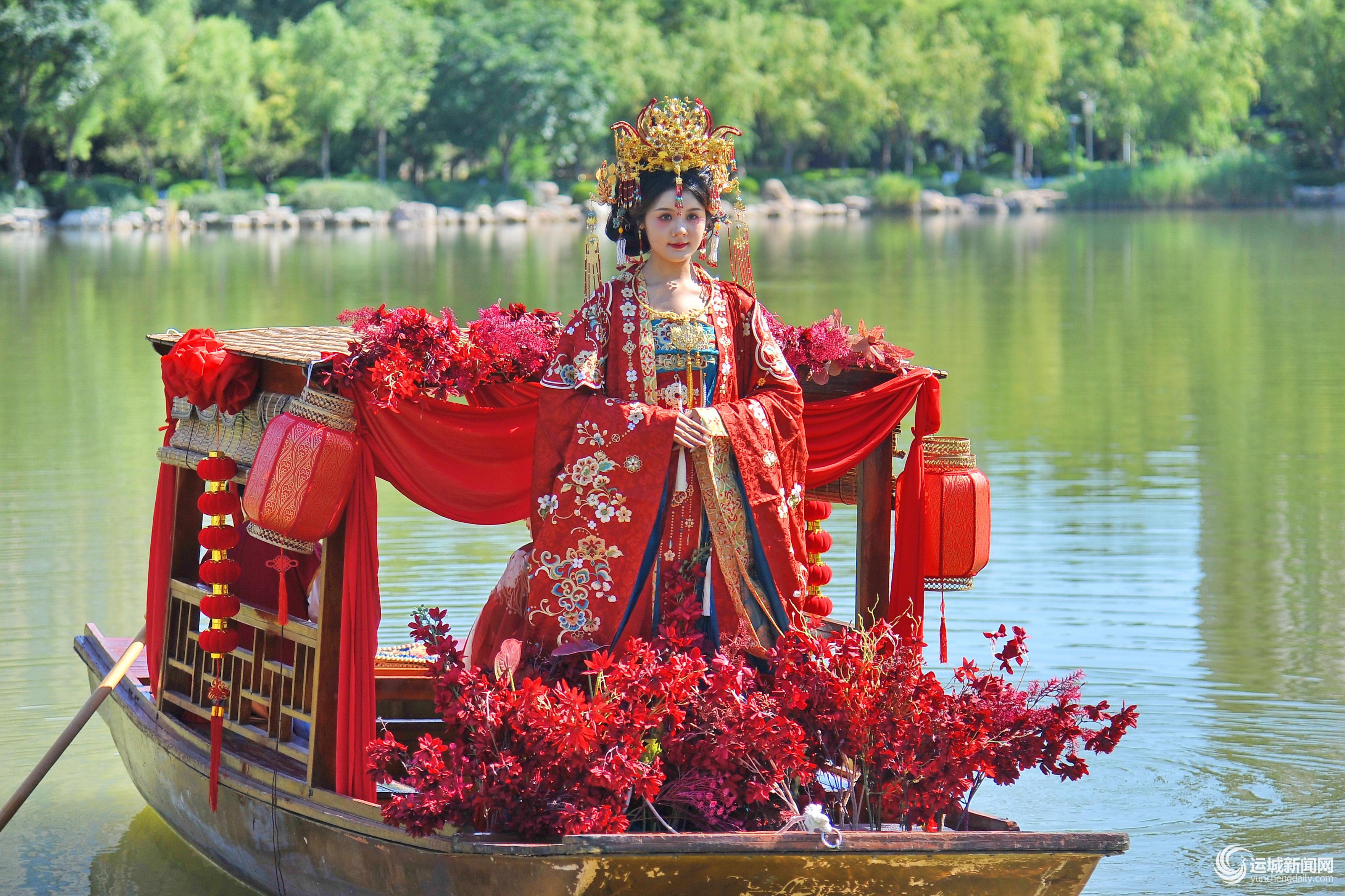 “为还原最纯正的唐制婚礼,我们查阅了大量典籍资料。”此次拍摄方原玺汉服婚嫁主理人李菲介绍道,“船上不仅有伴郎伴娘、喜娘相伴,还精心设计了抛绣球、行古礼等环节,希望能为运城新人们呈现一场原汁原味的江南水上婚礼。”据悉,这是团队在运城首次尝试水上婚礼MV拍摄,他们将江南水乡的温婉浪漫,带到了充满历史底蕴的河东大地。
