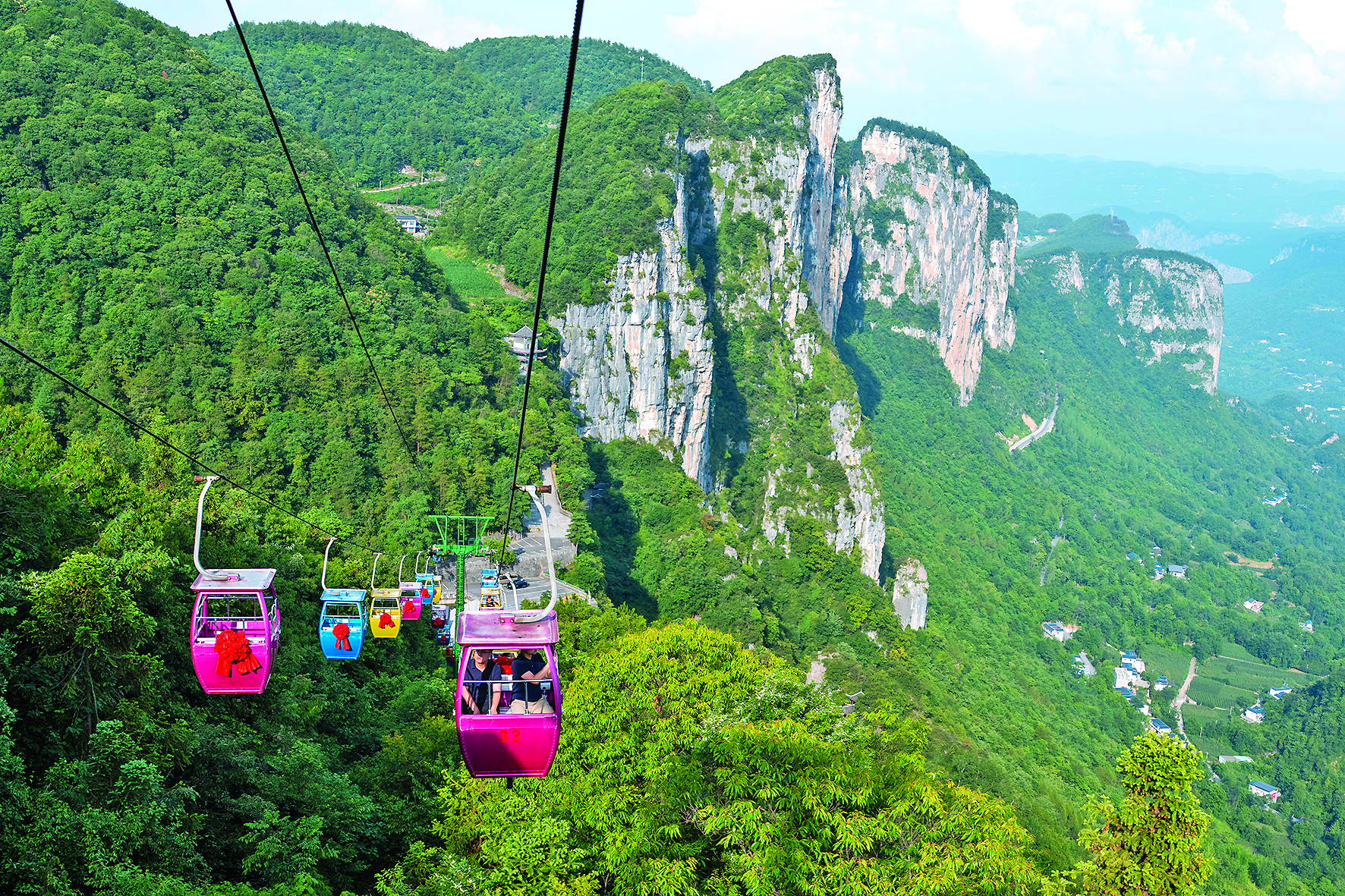 7月7日,游客在恩施州建始县黄鹤峰林景区乘坐缆车。 湖北省恩施土家族苗族自治州是知名避暑胜地。近年来,当地依托独特的喀斯特地貌、清凉宜人的高山气候和茂密的原始森林等优越生态资源,积极发展夏季避暑特色旅游,精心打造峡谷探险、溶洞探秘、清江漂流及土家风情体验等多样化旅游产品,吸引众多游客前来休闲避暑、度假观光。 新华社记者 伍志尊 摄