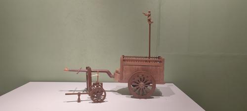 夏县宇达青铜文化产业园展出的指南车模型 记者 刘亚 摄