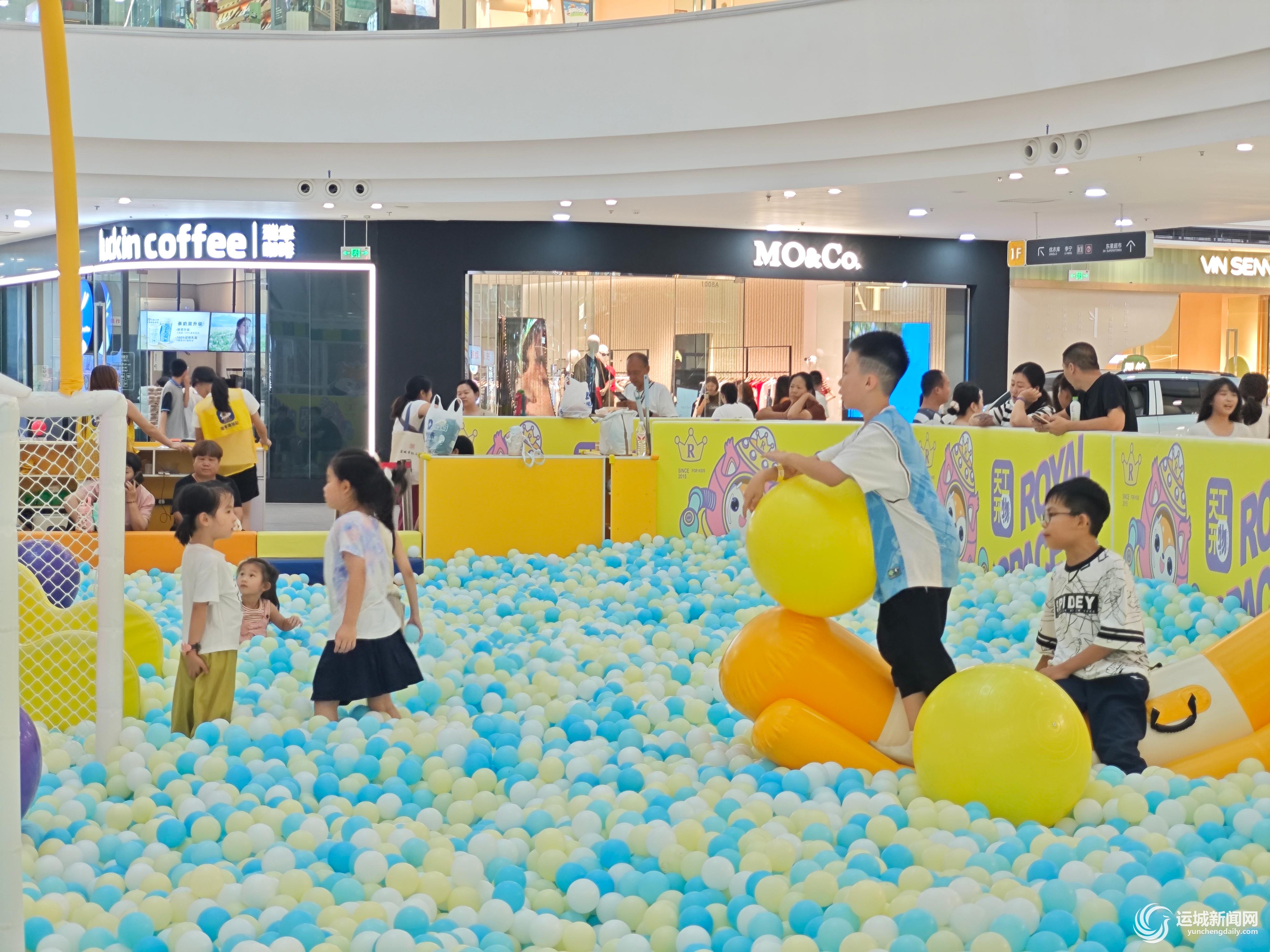 商场一楼的儿童游乐区内,彩色的球池与滑梯吸引了不少儿童嬉戏玩耍,欢笑声不绝于耳。家长们站在一旁耐心陪伴,既享受着商场内的清凉,也见证着孩子的欢乐时光。