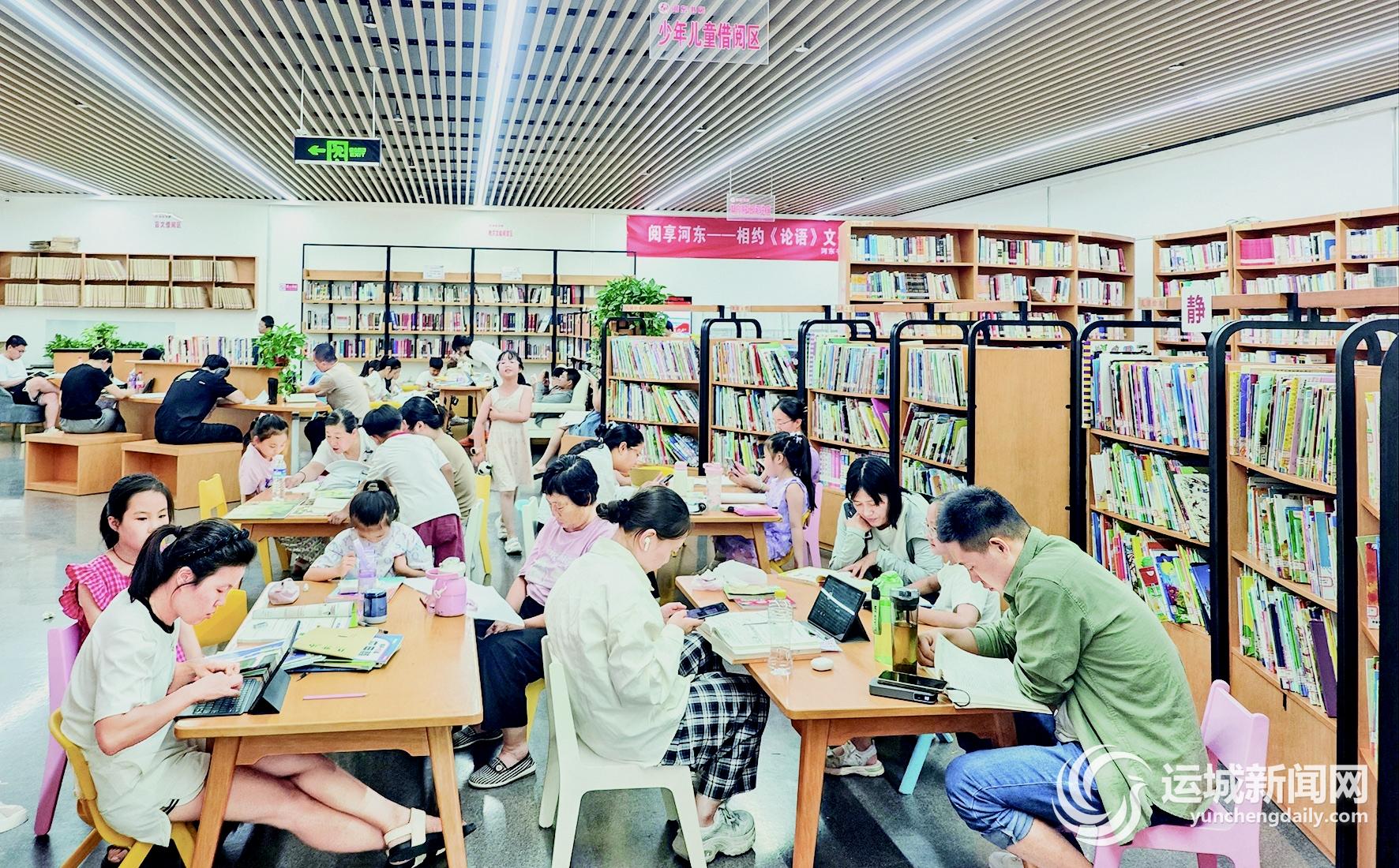 这个占地700平方米的书房,是许多市民夏日里的“精神避暑地”。阅读区里,孩子们围坐在绘本架旁,有的低声讨论着故事情节,有的趴在小桌子上写写画画;年轻人对着电脑专注地学习、工作;老年人戴着老花镜研读书页上的内容,大家在墨香与清凉中享受着轻松的“充电”时光。