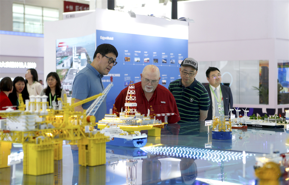 7月16日,参会者在链博会参观中国海油展台。 新华社记者 丁洪法 摄