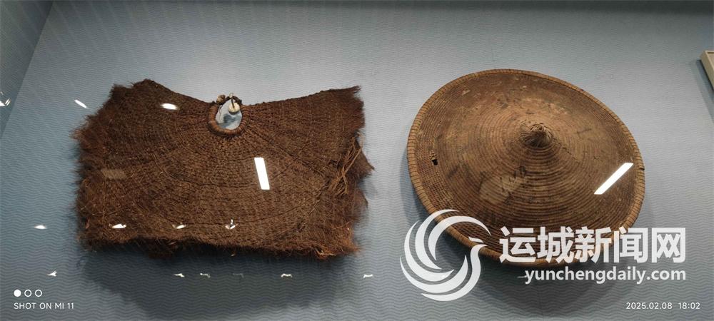 河东池盐博物馆展出的蓑衣和斗笠 记者 刘亚 摄