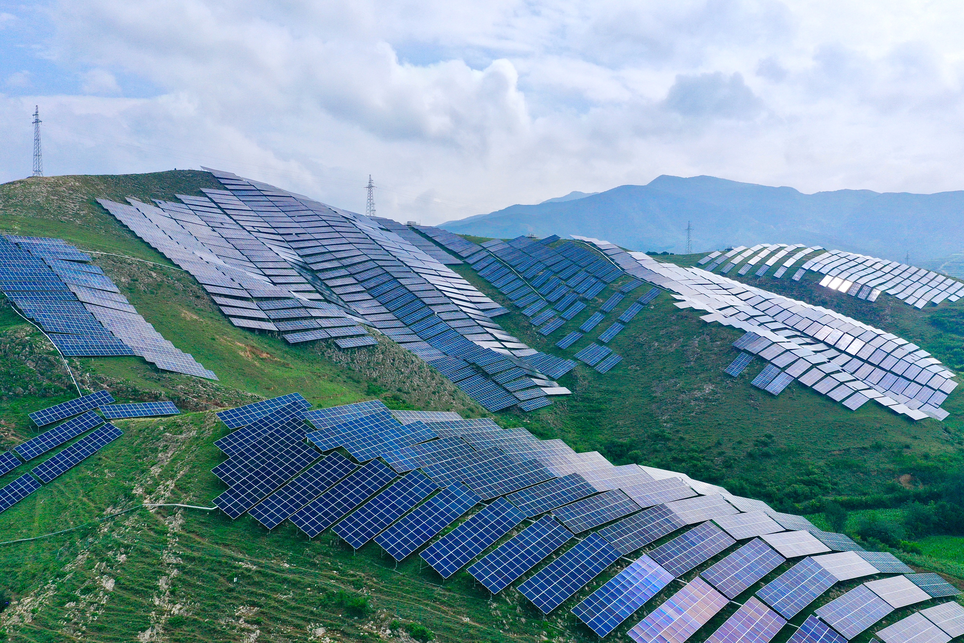 7月22日,在平陆县张店镇枣元村马沟岭一带,漫山遍野的太阳能光伏板在阳光照耀下熠熠生辉。
