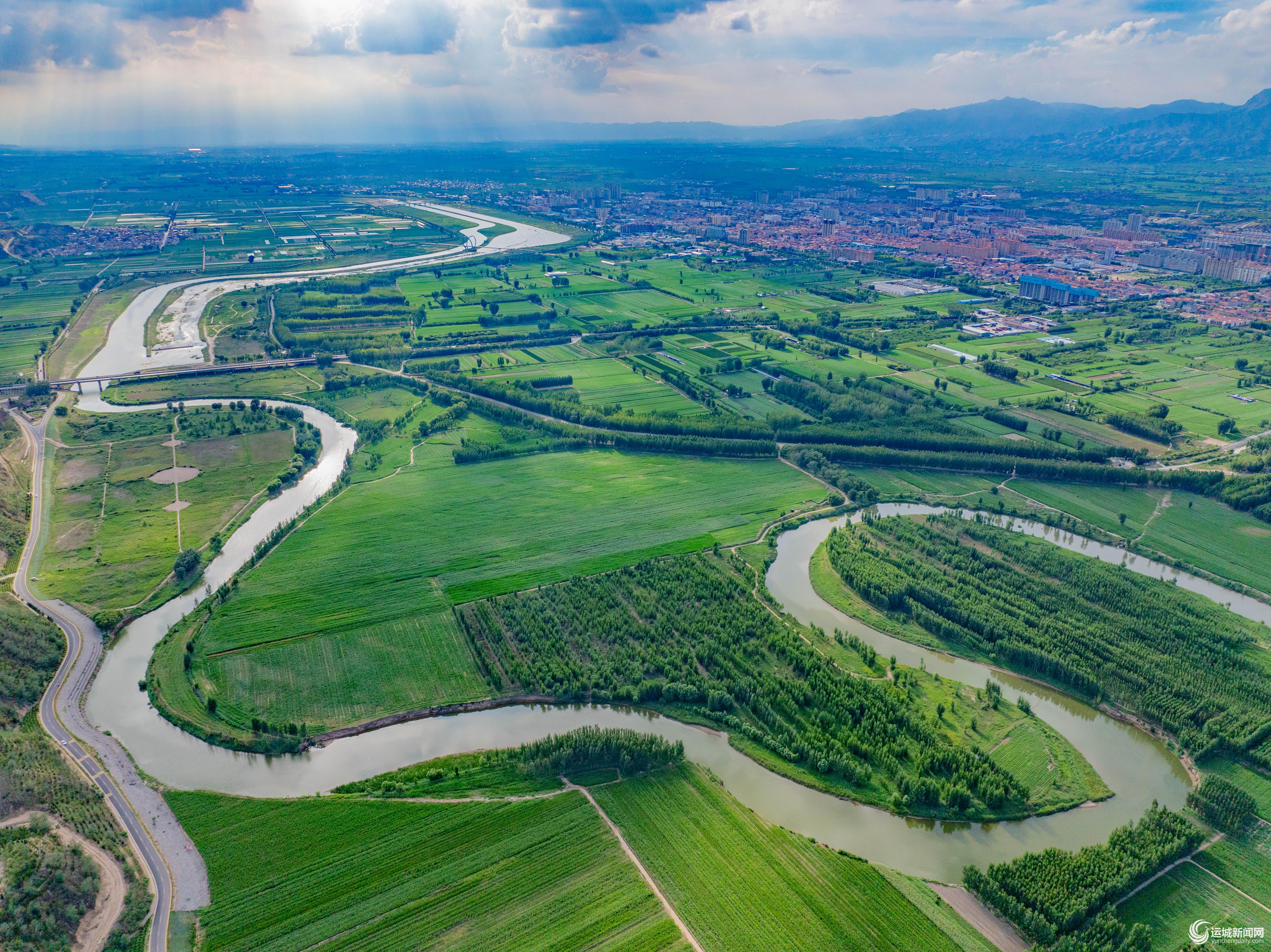 稷山县境内汾河两岸绿意盎然,生态优美(7月23日摄)。近年来,稷山县通过对汾河河道清淤疏浚、堤防生态化加固、两岸绿化美化等,持续改善汾河生态环境,筑牢流域生态屏障。
