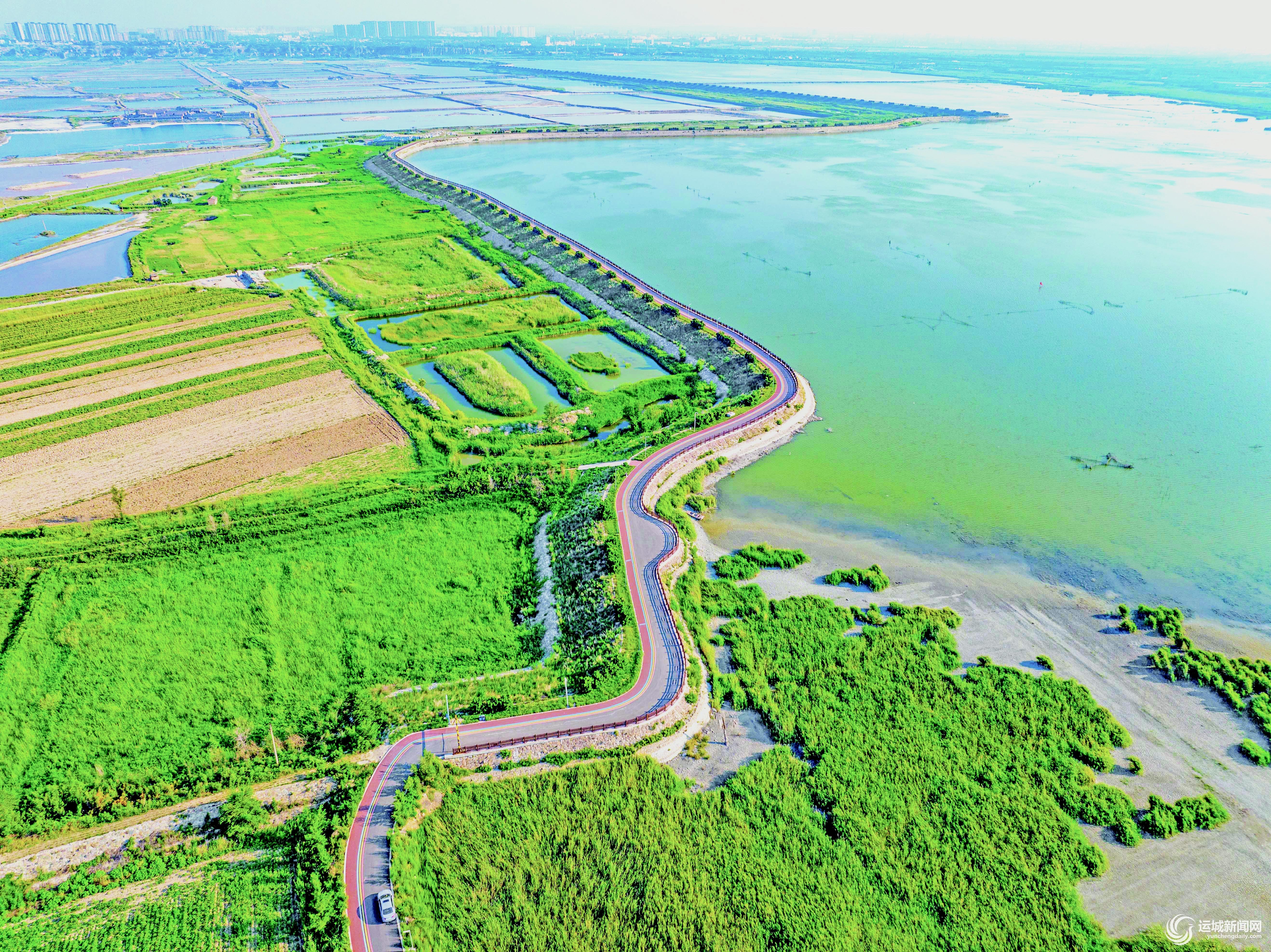 8月5日傍晚,沿着中心城区红旗东街向东,行至华旅石化杨家庄加油站附近,路南一条平坦的彩虹路跃入眼前,继续前行便到达南接中条山、北临中心城区、紧靠盐湖的鸭子池。不时有市民驾车、骑行到此,伴随着夏日雨后清新的空气和轻柔的微风,令人感到十分惬意。