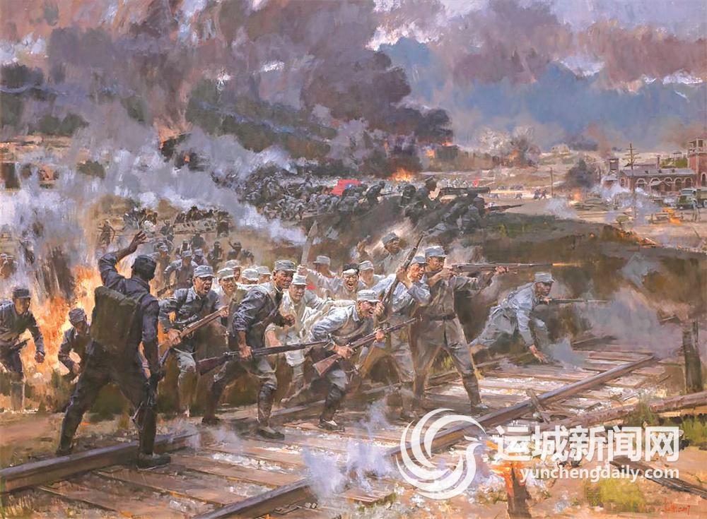 抗战题材经典美术作品长廊 百团大战——正太铁路破击战(油画)