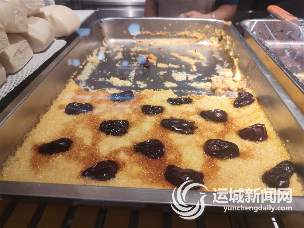 爱吃“糯叽叽”的朋友,可别错过运城的晋糕。红枣与江米一层压着一层码得紧实,慢火蒸腾间,米吸足了枣的甜蜜,枣浸透了米的清香,蒸得软糯黏糊,裹着一股子自然的甜润。出锅放凉,撒上一层白糖,挖一勺送进嘴,米香、枣香在舌尖缠成一团。冷藏后更添清爽,夏日午后吃一块,解馋又舒心,是老运城人夏日里的“甜蜜回忆”。