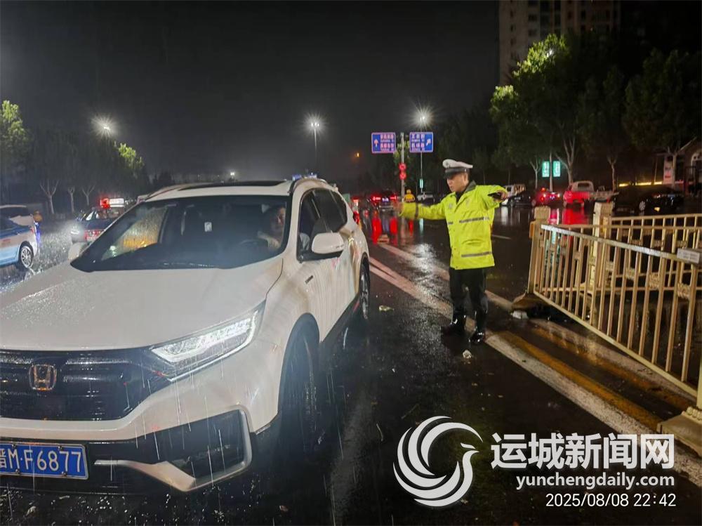 21时许,雨势持续增强,部分路段出现明显积水,通行压力骤增。盐湖交警大队民辅警迅速调整勤务,重点巡查和管控大村桥洞、东桥岗、解放路立交桥等易积水点位。
