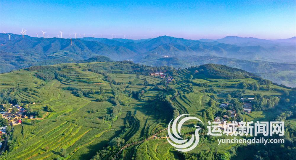 8月11日,初秋时节,夏县中条山腹地泗交镇境内,绿色梯田与群山、树林、道路、民居等相映成趣,勾勒出一幅美丽的绿色生态图。 特约摄影 张秀峰