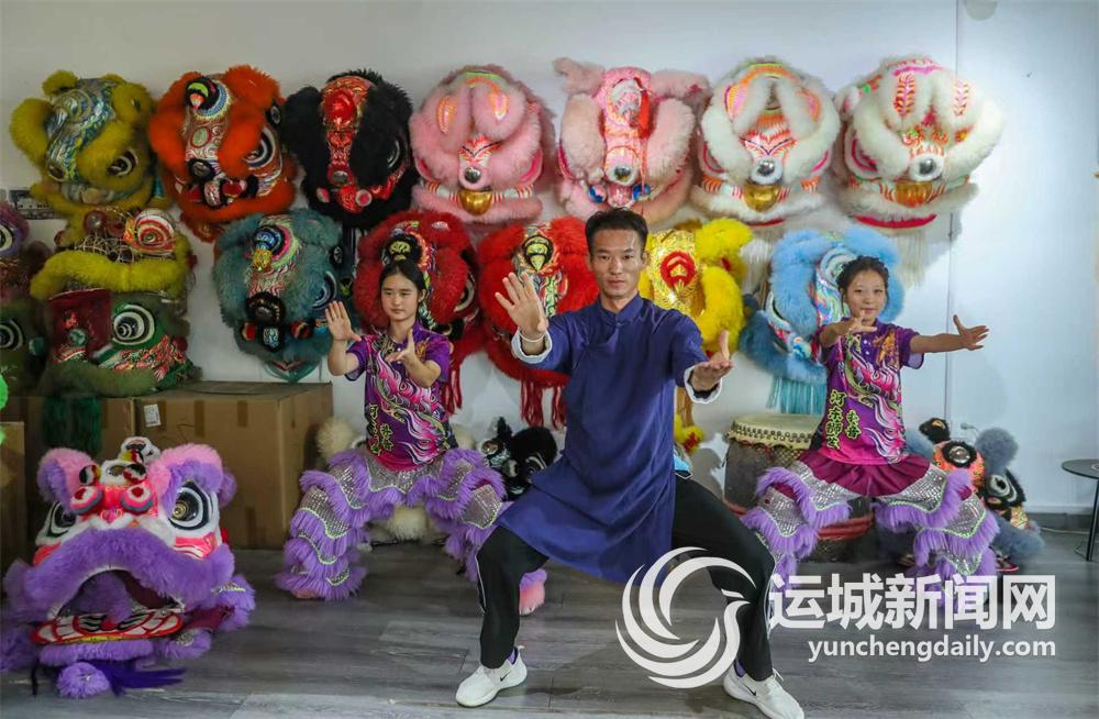 值得一提的是,他在舞狮中还融入了河东元素,用白狮、红狮、黑狮分别代表刘备、关羽、张飞,然后演绎“桃园三结义”的故事。