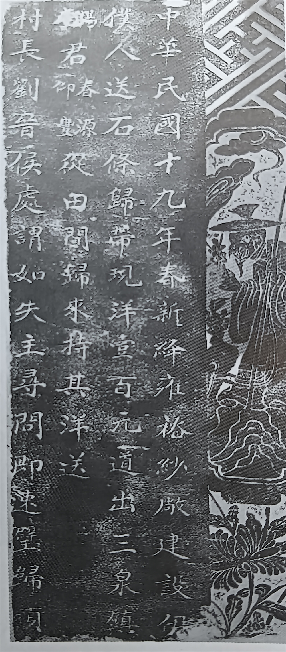 2023年10月,三泉村在编辑村志时,从本县爱好收藏人士杨富荣的藏品中发现了这块石碑的部分残块,通过残碑上的文字记载和本村亲眼见过此碑村民的讲述,这个隐藏在历史年轮中的感人故事再次浮出水面。为激励村民传承诚实守信的美德,2023年11月,三泉村村“两委”重新镌刻此碑,并将其立在村里的地标建筑药王阁门楼下。