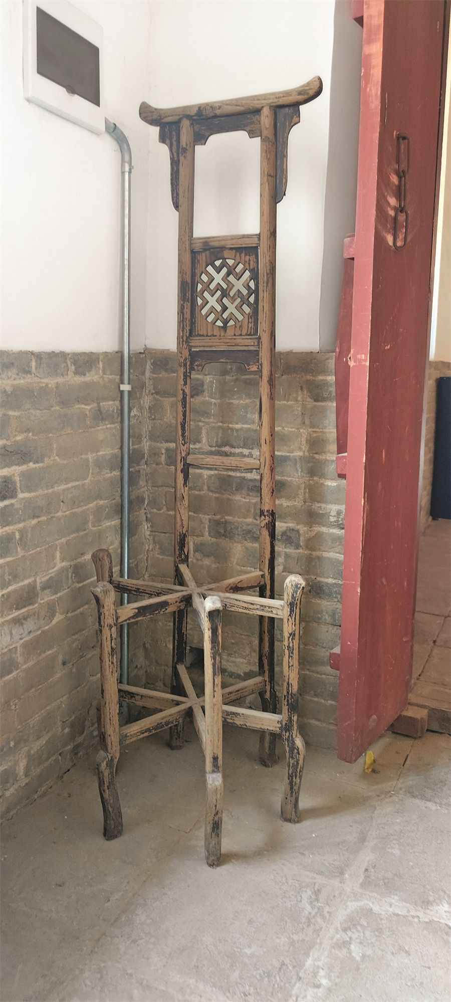 这个结构相当于洗手盆与台面、毛巾架的结合体。在古代的卧房内,常常摆放在床的一旁,与摆放有妆奁的桌子靠近。这样,古人清晨一觉醒来,可以方便地在卧室内完成清洁、梳妆。