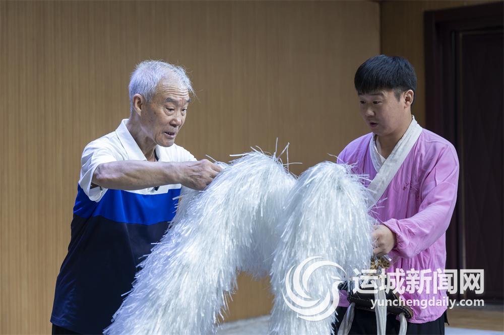 此前演出《伐子都》时,李志辉从近3米高的桌子上往下翻时,靴子帮和鞋底意外开线,落地瞬间脚打滑,导致骨折。这次培训,他主动报名,一门心思想学蒲剧特技。骨折旧伤尚未痊愈,李志辉说,要咬牙坚持,毕竟这样的学习机会很难得,一定要抓住。“干一行,要爱一行,为了学习,疼痛算不了啥”。