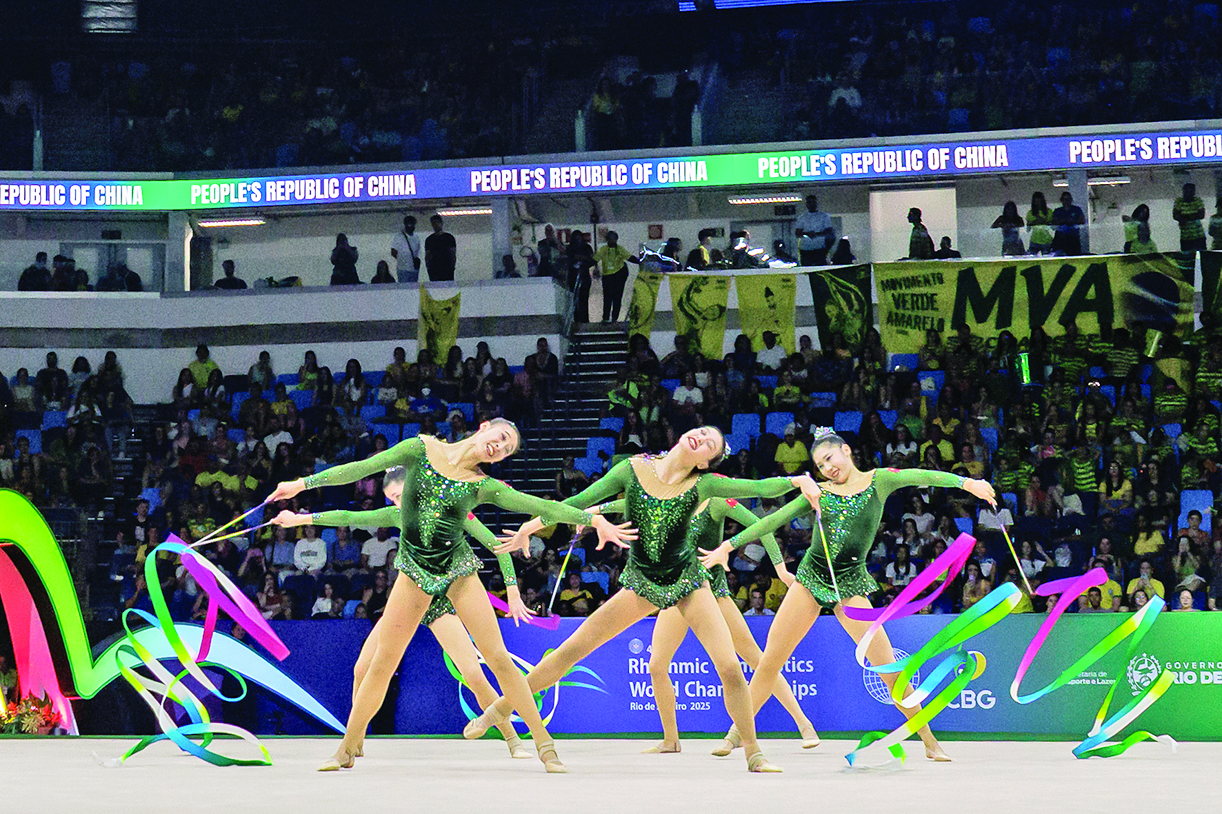 当日,在巴西里约热内卢举行的2025年国际体操联合会艺术体操世界锦标赛集体5带决赛中,中国队获得冠军,日本队获得亚军,西班牙队获得季军。