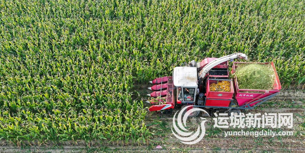 8月27日,在夏县尉郭乡一处高标准农田里,农机在收获玉米。