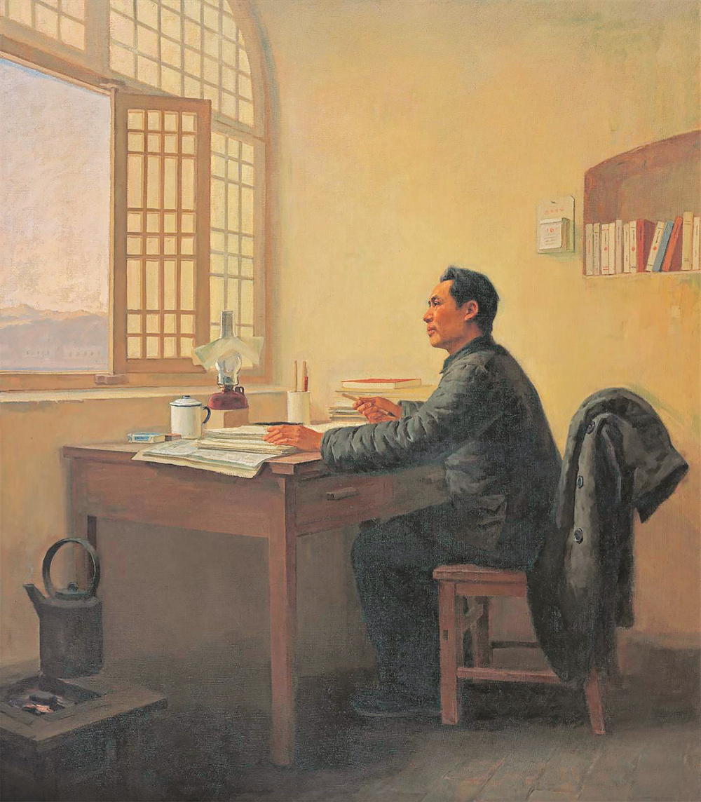 抗战题材经典美术作品长廊 毛泽东在延安著作 (油画)
