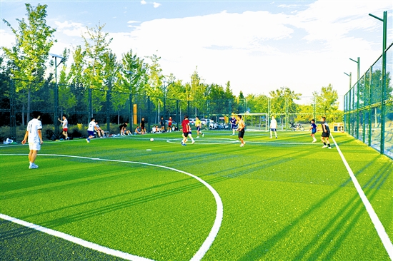 近日,记者来到运动公园,刚下车就感受到了足球场内的人声鼎沸。抬眼一看,一群穿着“宝武铝业”字样球服的成年人奔跑在绿茵场上,与他们互相追逐的是一批稚嫩的面庞。“自今年3月我们就开始来这踢球了,这个公园的场地设施都很完善,还免费开放,我们踢得很尽兴。”宝武铝业销售部营销经理闫鹏程告诉记者。