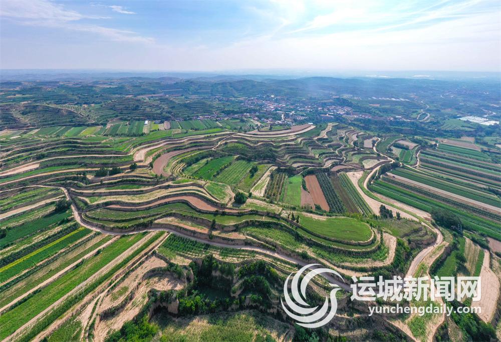 8月27日,闻喜县郭家庄镇,层层叠叠的梯田沿山势绵亘蜿蜒,与错落有致的房屋相互映衬,构成一幅秀美的乡村画卷。