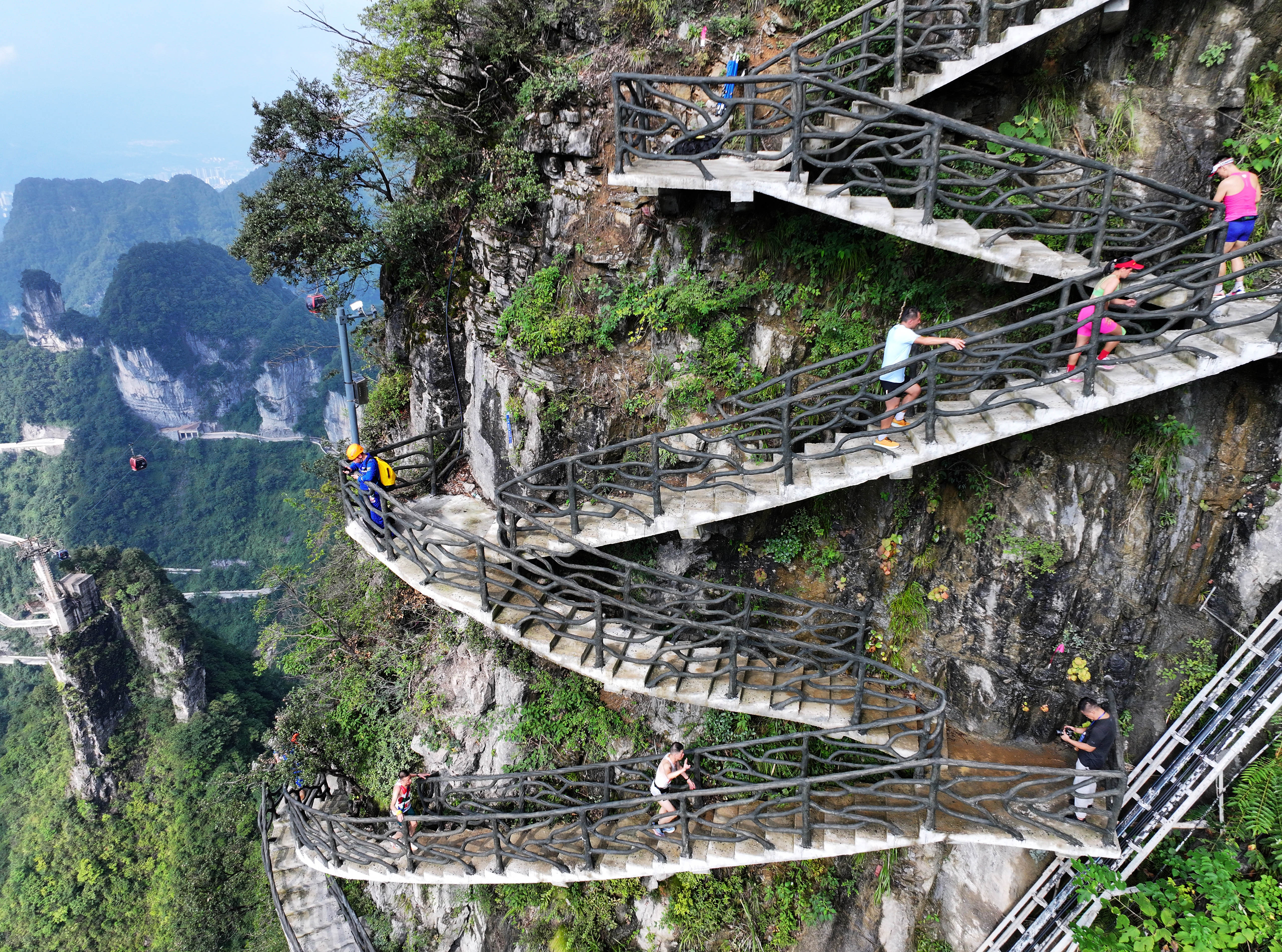 当日,2025“冲顶天门”全国登山挑战赛(张家界天门山站)在张家界天门山景区开赛。