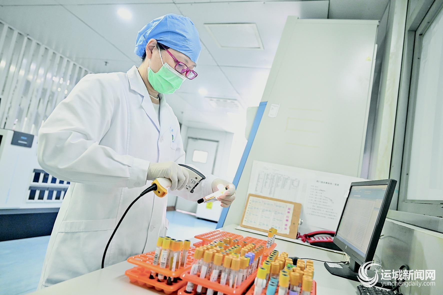 8月26日,在东台市人民医院检验科,医务人员将镇卫生院送来的标本进行电子签收。