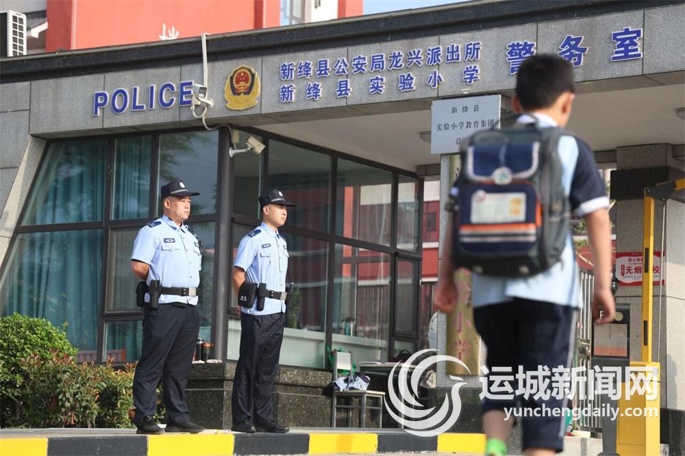 新绛县实验小学内,新绛县公安局龙兴派出所的民辅警开学前夕化身“安全管家”,为学校开展安防设施体检,并在“开学第一课”上为学生们讲解交通、防溺水、防诈骗等知识。
