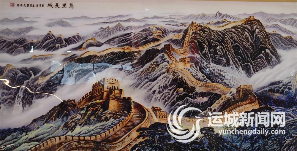 运城工艺美术馆展出的掐丝珐琅《万里长城》 记者 刘亚 摄