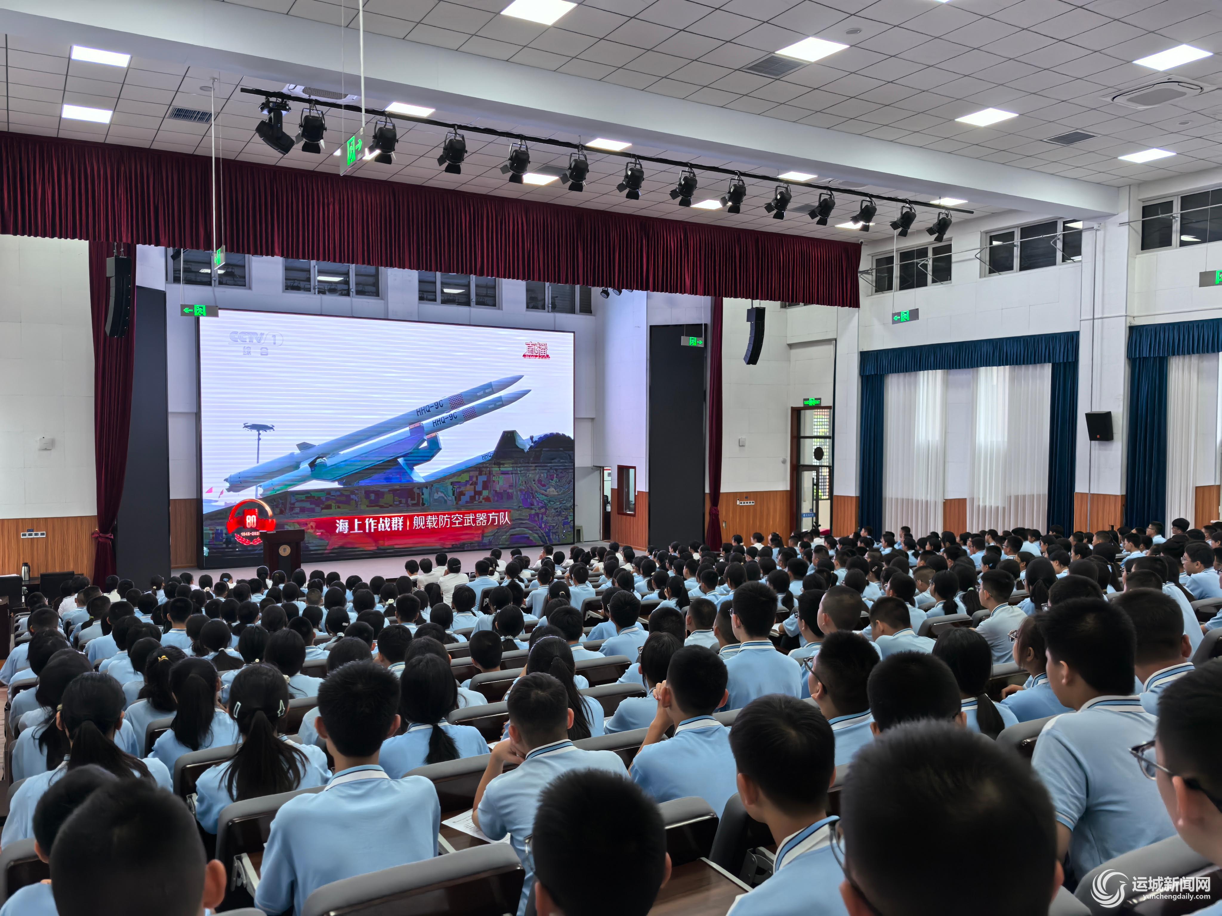 运城力行中学西校组织全体师生在教室和知行堂集中观看了中国人民抗日战争暨世界反法西斯战争胜利80周年纪念日阅兵。同学们纷纷表示,要铭记历史、珍爱和平,继承先辈精神,努力学习、锤炼品格,将来为祖国繁荣富强贡献力量。
