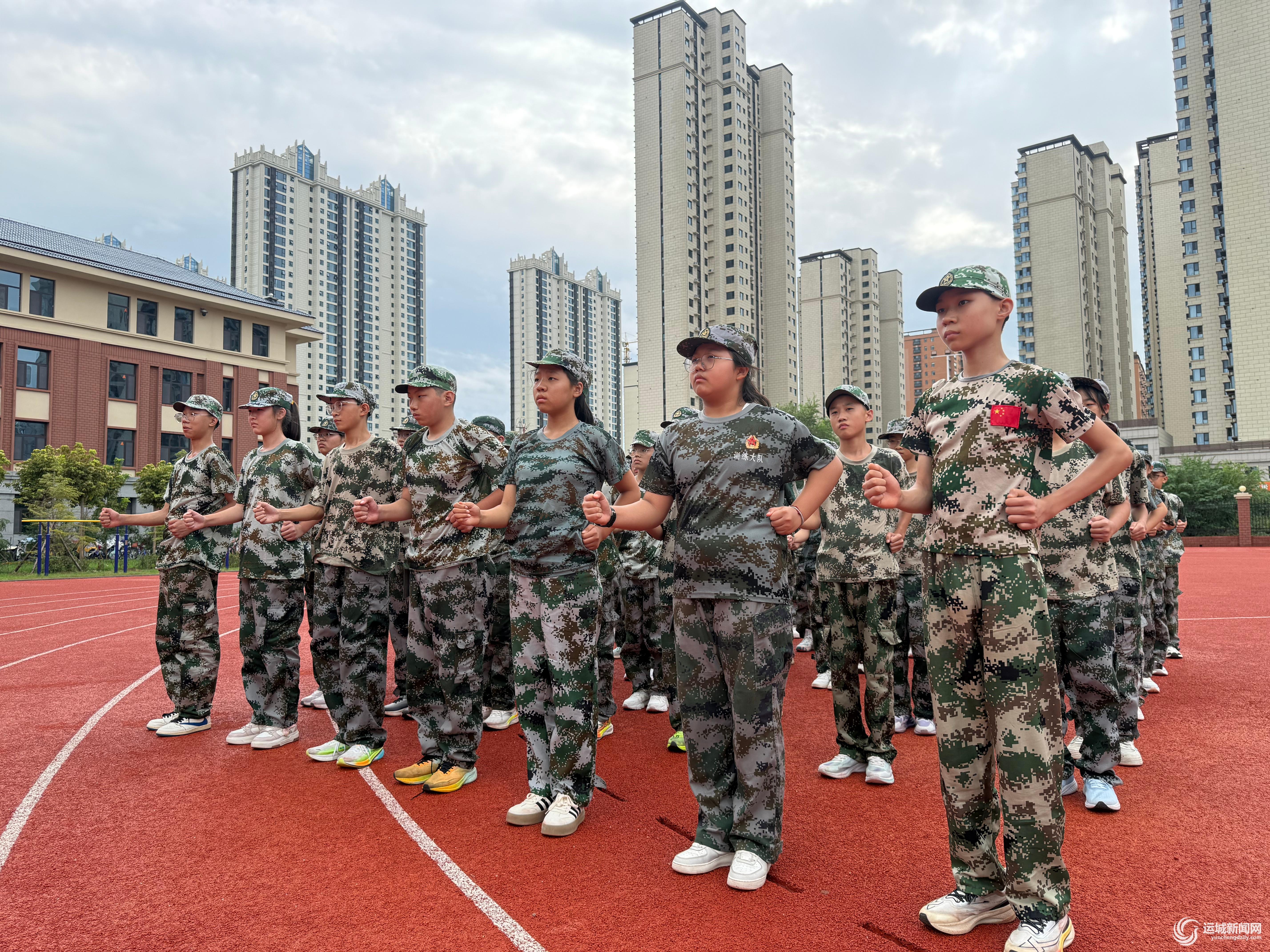 校园里,孩子们正昂首挺胸,迈着正步,加紧练习。“今年军训整体以队列队形练习为主,其中穿插一些坐姿、站姿训练及合唱国歌的环节,帮助孩子们养成良好习惯,激发爱国情怀。”该校副校长王杰介绍,自2023年建校以来,盐湖区第十实验学校重视对学生的爱国主义教育,开展了形式多样的大思政育人活动,帮助孩子们系好人生的第一粒扣子,厚植家国情怀,培育时代新人。