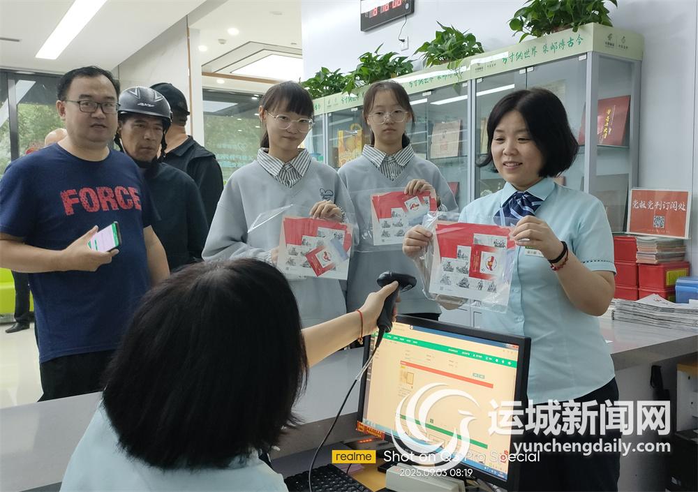 运城晚报讯(记者 杜磊 通讯员 何李琴)9月3日上午,中国邮政集团有限公司运城市分公司在中心城区河东广场邮政大厦营业厅发售《中国人民抗日战争暨世界反法西斯战争胜利八十周年》纪念邮票。一大早,我市许多集邮爱好者在网点门口排起了长队。
