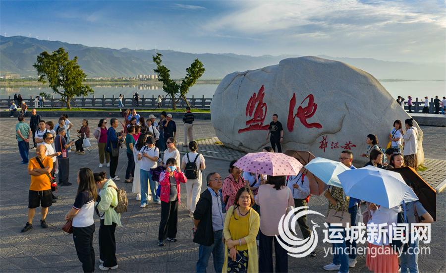 暑期旅游高峰期已过,运城盐湖旅游热度不减,众多外地游客纷纷来此,欣赏秋日盐湖水天一色的美景。 记者 茹雅 摄