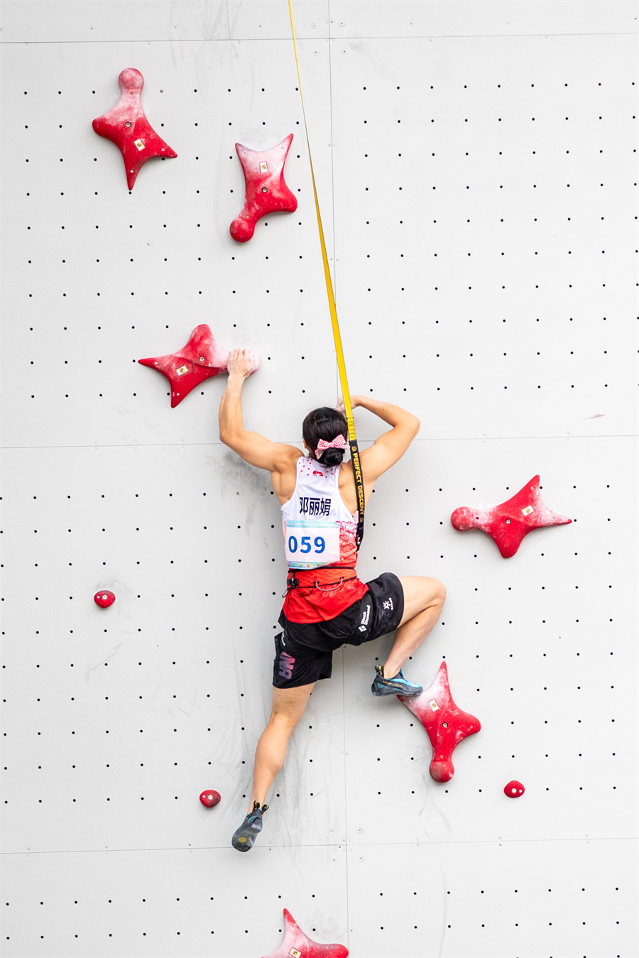 当日,第32届全国攀岩锦标赛女子速度决赛在重庆举行。 新华社记者 黄伟 摄