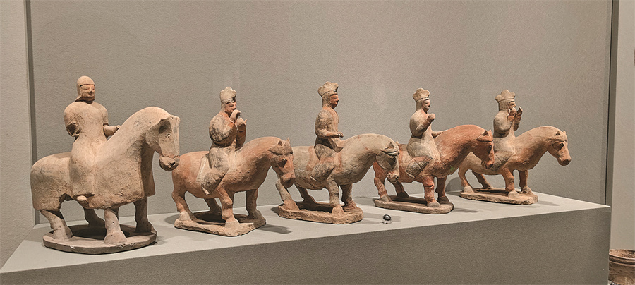 山西博物院展出的古人骑马塑像 记者 刘亚 摄