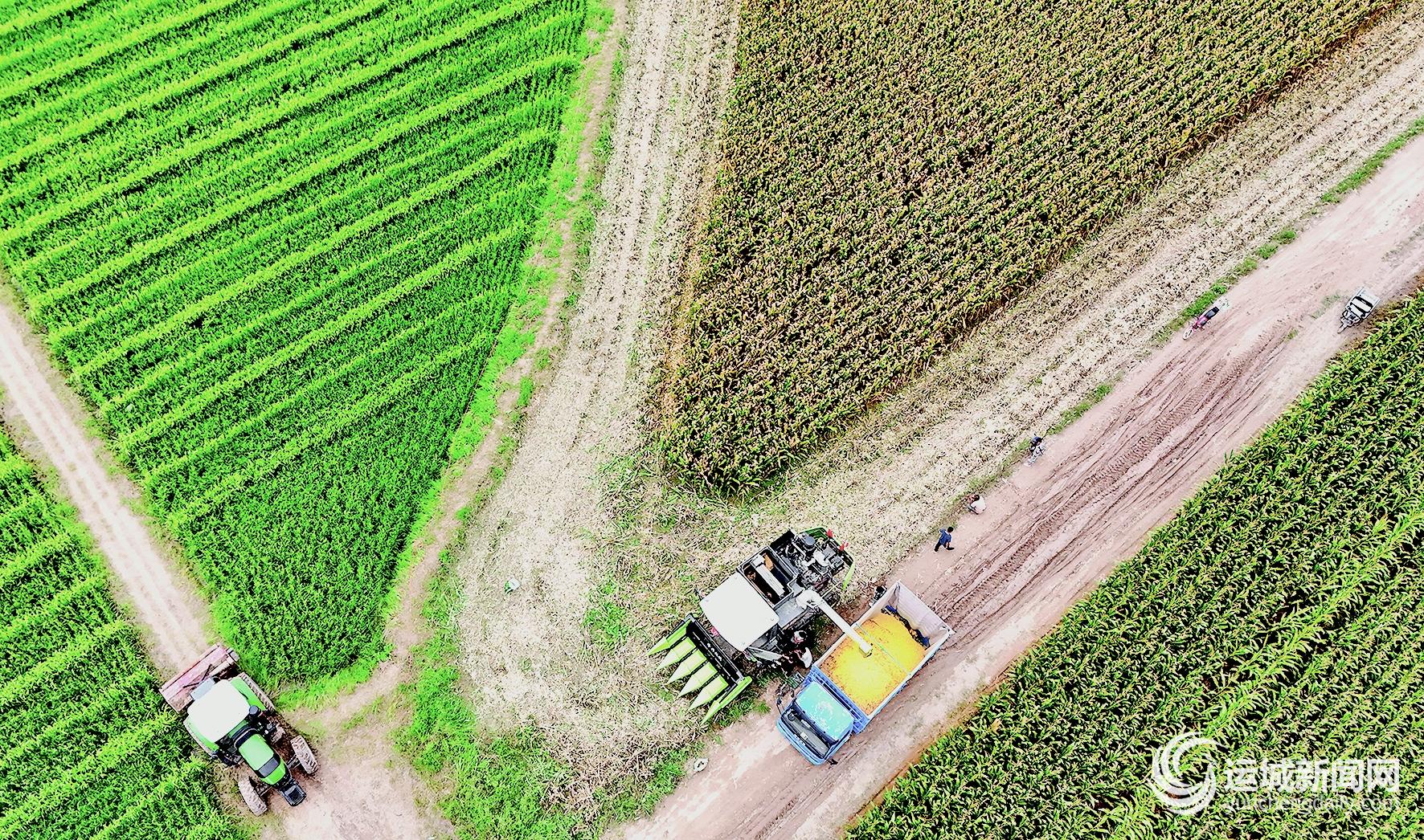 9月7日,万荣县黄河滩玉米地里一派繁忙景象。