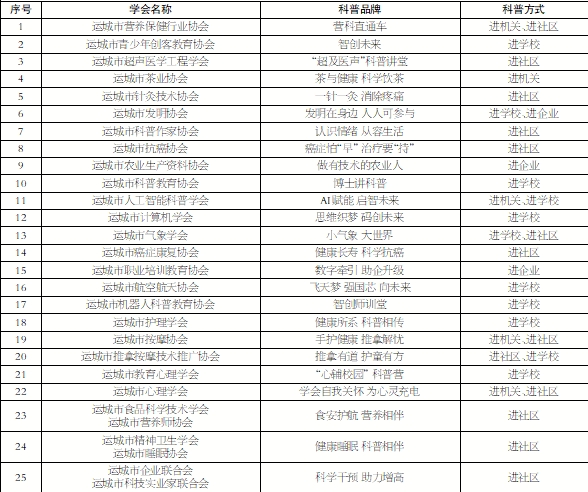 此次线上预约面向我市中心城区机关、社区、学校和企业开放,预约时间为9月“全国科普月”期间。各相关单位可通过微信搜索或扫描二维码关注“运城科协”公众号,点击下方服务菜单“科普预约”按钮,即可进入在线预约平台进行预约。所有活动均为公益性质,不收取任何费用。