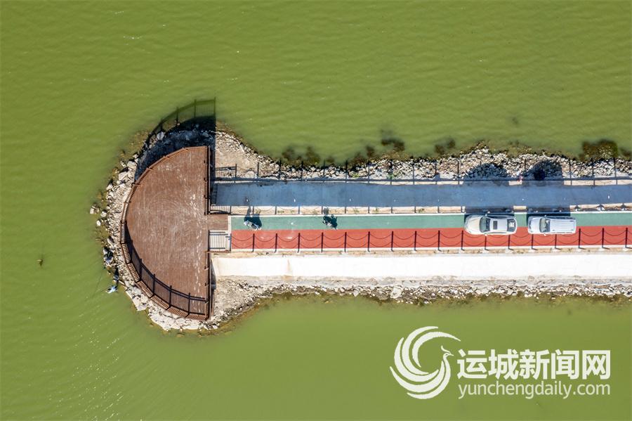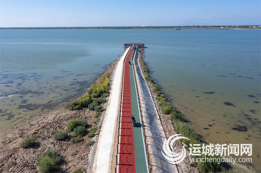 近日,位于盐湖区解州镇西元村的女盐池,正以一抹亮眼色彩吸引游客目光——全新铺设的彩虹步道穿湖而过,红、绿、蓝、白撞色鲜明,与近旁的澄澈湖水及远方的湛蓝天空相映成趣。驾车穿行其间,宛如步入流动的生态画卷。行至步道尽头,新修的木栈道向湖边延伸,凭栏远眺,女盐池全景尽收眼底,让人瞬间心境开阔。