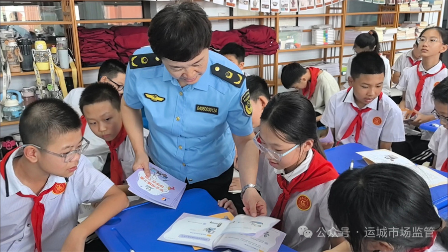 近日,市市场监管局联合市综合检验检测中心、运城眼科医院在运城市理想学校开展“药械安全 青春护航”宣传活动。图为工作人员向学生讲解近视防控的医疗器械知识。
