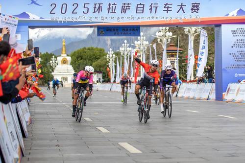 9月14日,选手们在冲线后庆祝完赛。 当日,2025环拉萨自行车大赛在拉萨市落幕。赛事共设置公路自行车男子精英组、公路自行车女子精英组、山地自行车男子公开组、山地自行车女子公开组四个组别。 新华社记者 姜帆 摄
