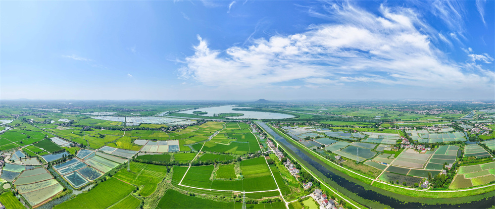9月15日拍摄的句容赤山湖及周边农田(无人机全景照片)。