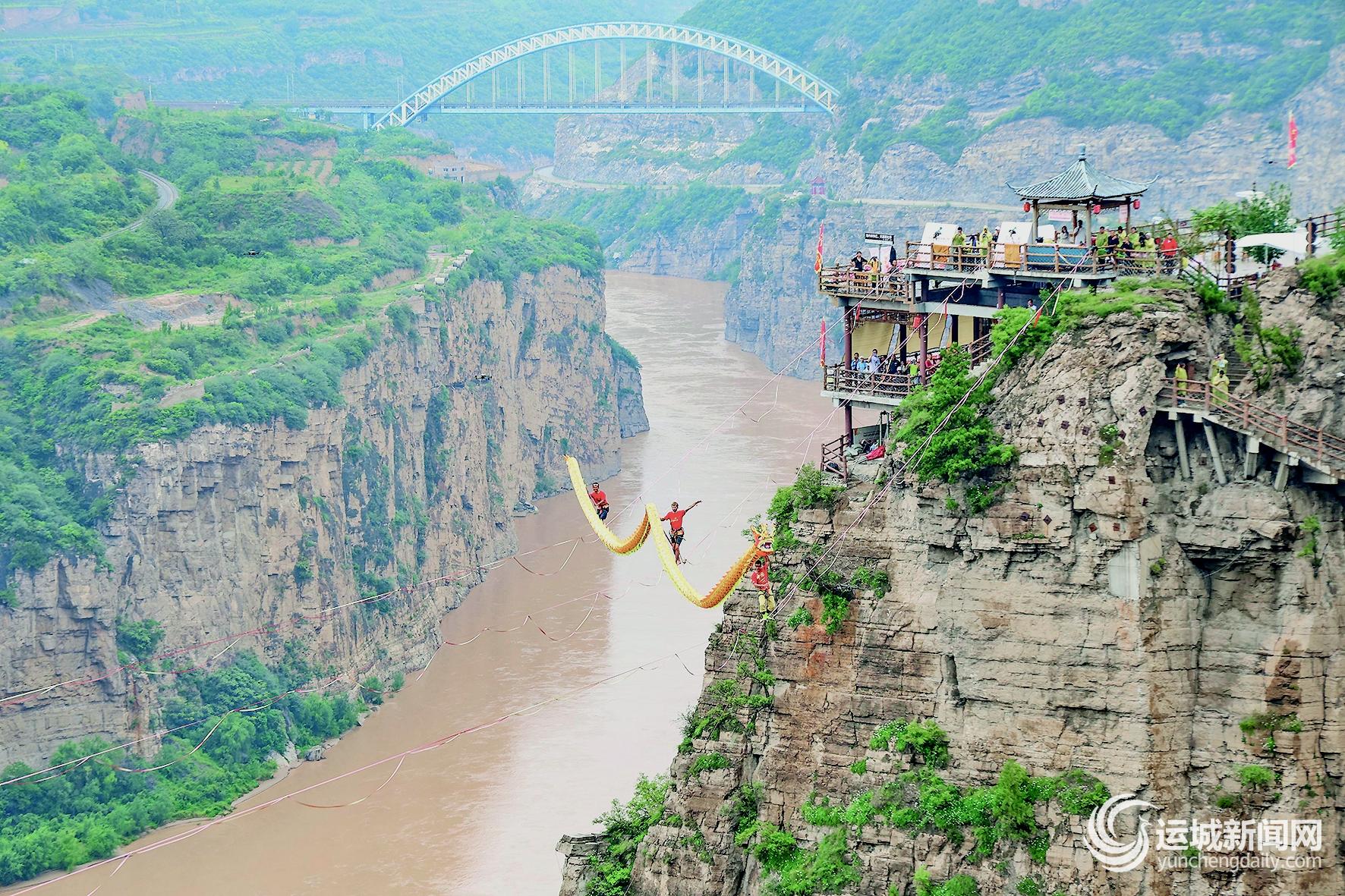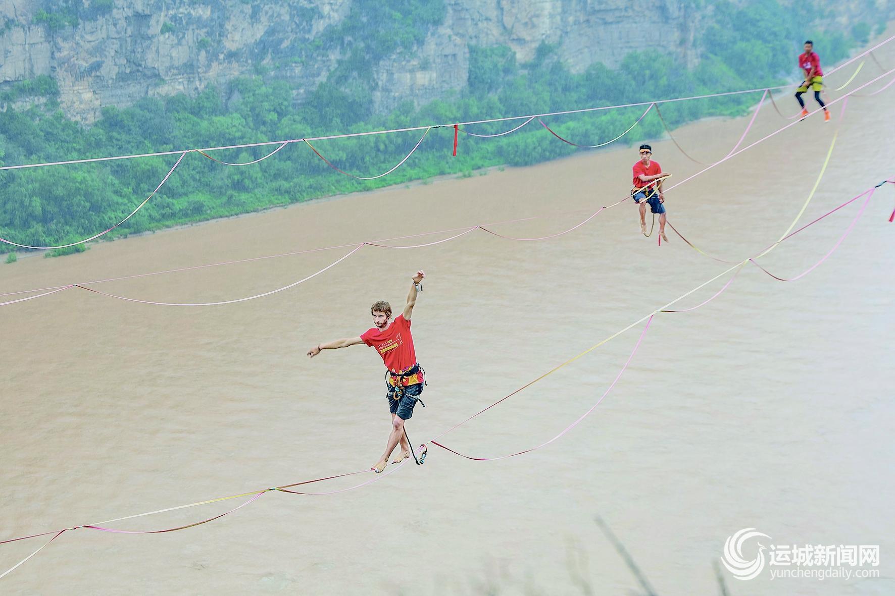 运城晚报讯(记者 陶登肖)9月15日、16日,黄河大梯子崖2025高空扁带国际挑战赛在河津市黄河大梯子崖景区举行。来自中国、美国、波兰、哈萨克斯坦等国家和地区的17名选手,于百米高空上演云端漫步,为游客和线上观众奉上一场极限运动盛宴。