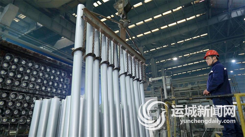 山西银光华盛镁业股份有限公司镁合金挤压生产线全速运转。