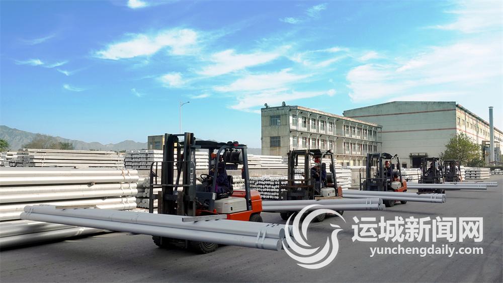 中铝山西新材料有限公司工人驾驶叉车将铝合金棒倒运入库。