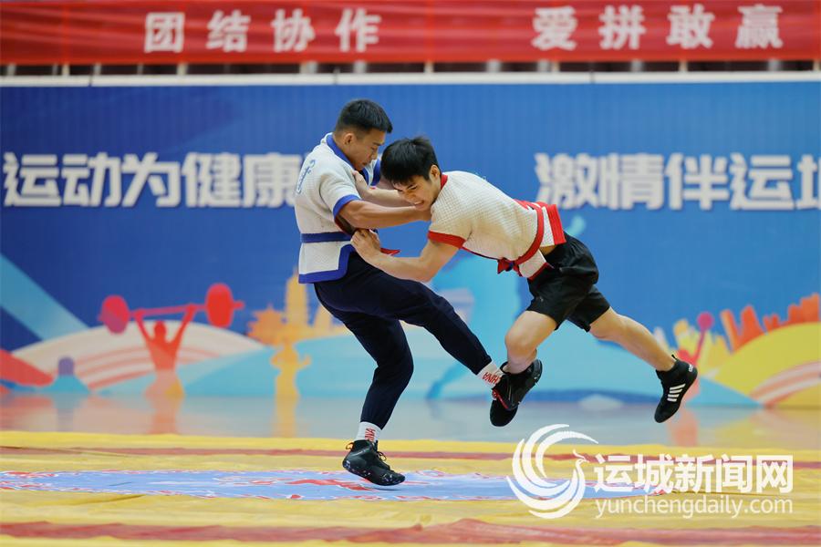 山西省第十二届跤坛争霸赛分站赛(运城站)暨第十五届“武圣杯”跤王争霸赛现场。 本报记者 闫 鑫 摄
