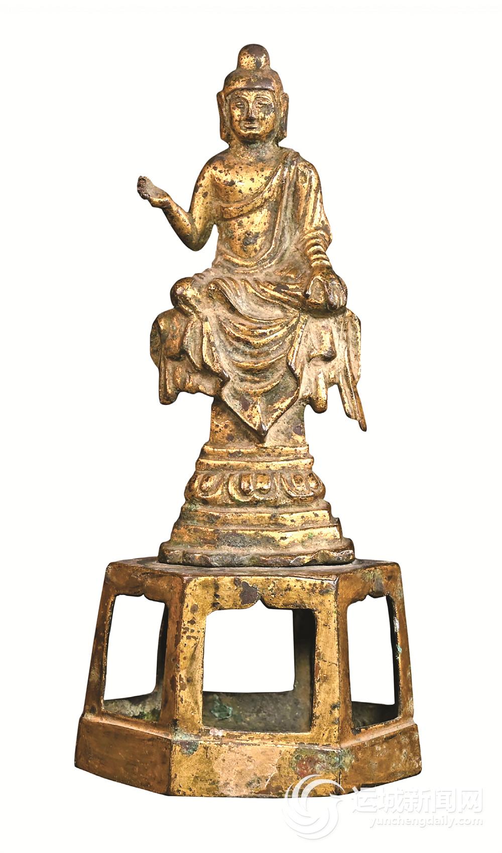 在佛教造像艺术的长河中,盐湖区博物馆馆藏的这尊北齐天宝三年(552年)的鎏金释迦佛坐像虽体量精巧,却在方寸之间凝结了当时对佛陀的想象,在鎏金表面形成光影流转的韵律。